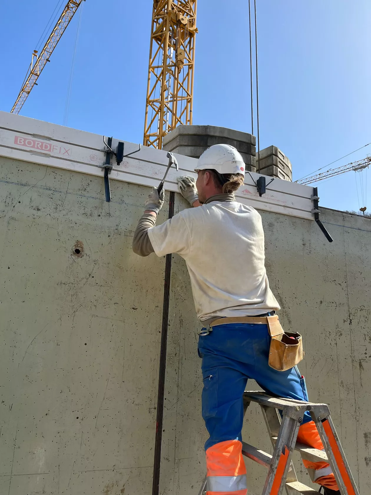 Das Bordfix Abschalelement mit Wandwinkel ist die wirtschaftlichste Lösung, um Deckenränder bereits beim Betonieren der darunterliegenden Wand schnell und effizient abzuschalen.