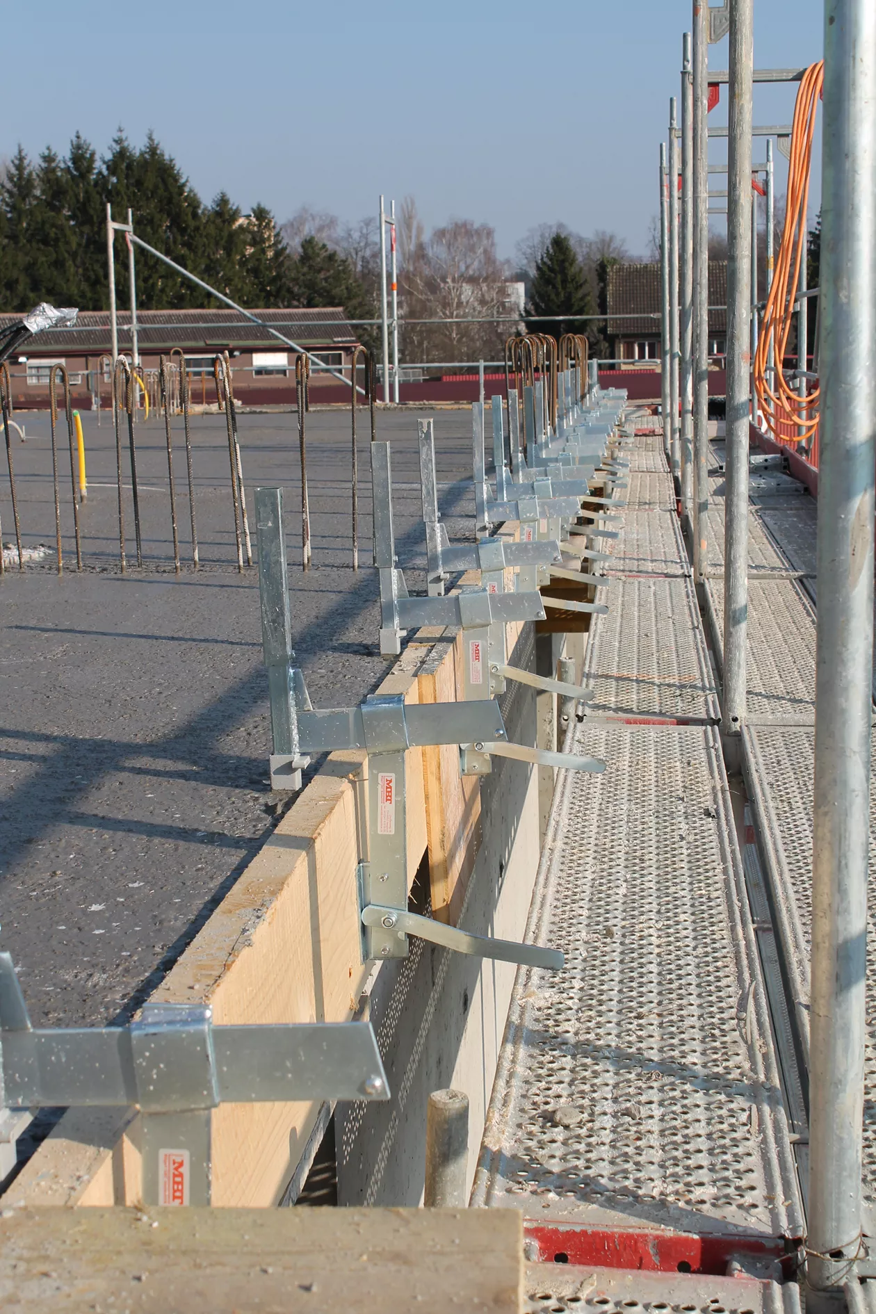 Das Kombifix-System reduziert den Aufwand der Abschalung von Deckenrändern im Bereich von Backsteinmauerkonstruktionen auf ein Minimum. Der Abschalungswinkel wird mit den mitgelieferten Aluminiumnägel auf die Deckenschalung fixiert, dadurch wird die Schubkraft des Deckenbetons in die Deckenschalung eingeleitet und erzeugt keinen Schub auf das Mauerwerk nach aussen.