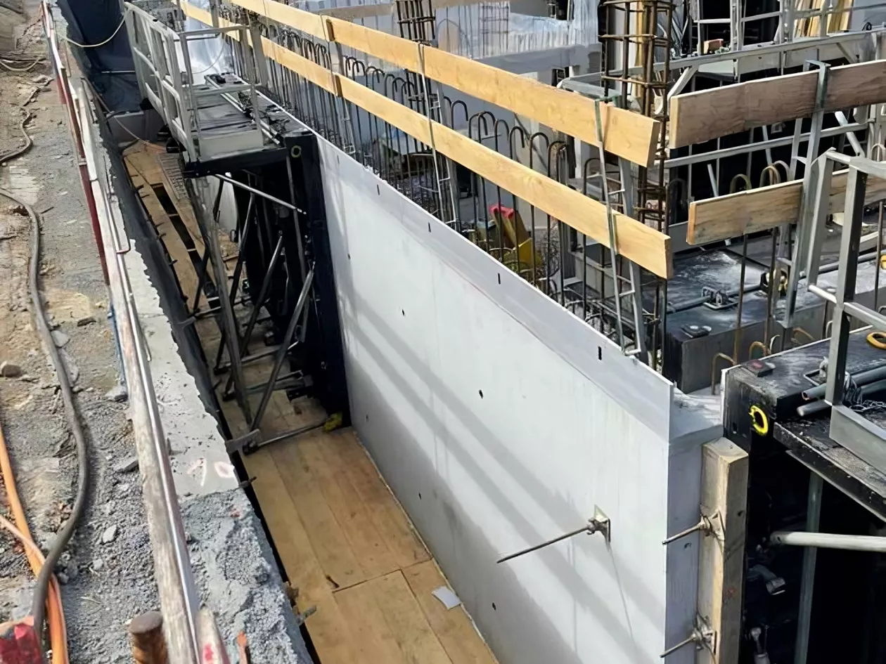 Die Absperrhülse Metall 60 cm und 70 cm dient als Aufnahme für MBT Steckpfosten in Betonwänden. Sie wird mit zwei Montageeisen mittels Drahtbindern an der Wandarmierung fixiert und so ausgerichtet, dass die Öffnung auf Oberkante Decke liegt und mindestens 20 cm in der Wand einbetoniert wird. Nach dem Betonieren der Wand kann der Steckpfosten eingesteckt und der Seitenschutz montiert werden. Dieser bleibt nun während sämtlichen weiteren Arbeitsschritten, vom Schalen über das Betonieren bis hin zu den Arbeiten auf der fertigen Decke, ohne Umsetzen bestehen.