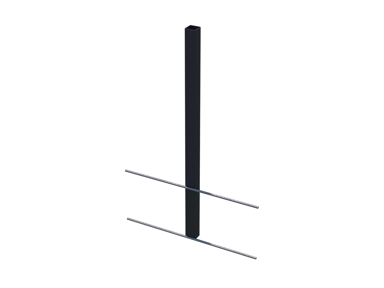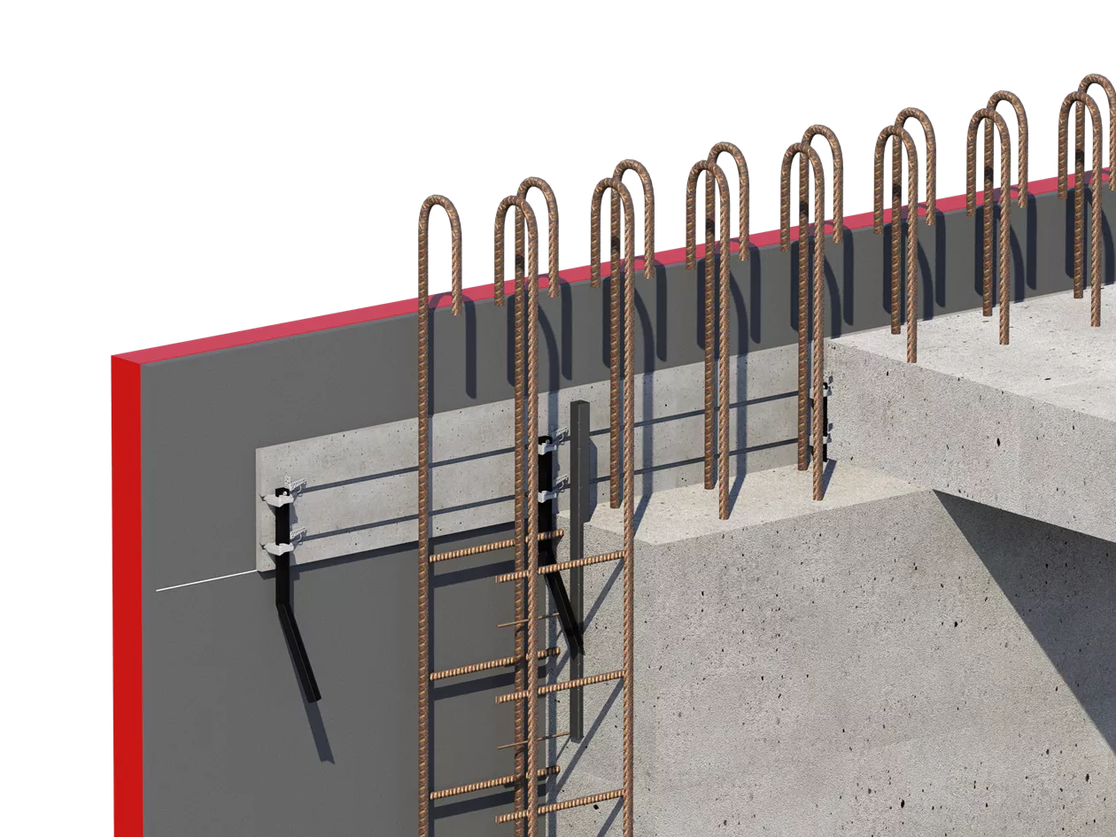 Die Absperrhülse Metall 60 cm mit 2 aufbiegbaren Montageeisen wird mit Drahtbindern an der Wandarmierung fixiert und so ausgerichtet, dass die Öffnung auf Oberkante Decke liegt und mindestens 20 cm in der Wand einbetoniert wird. Für Decken bis 40 cm geeignet.