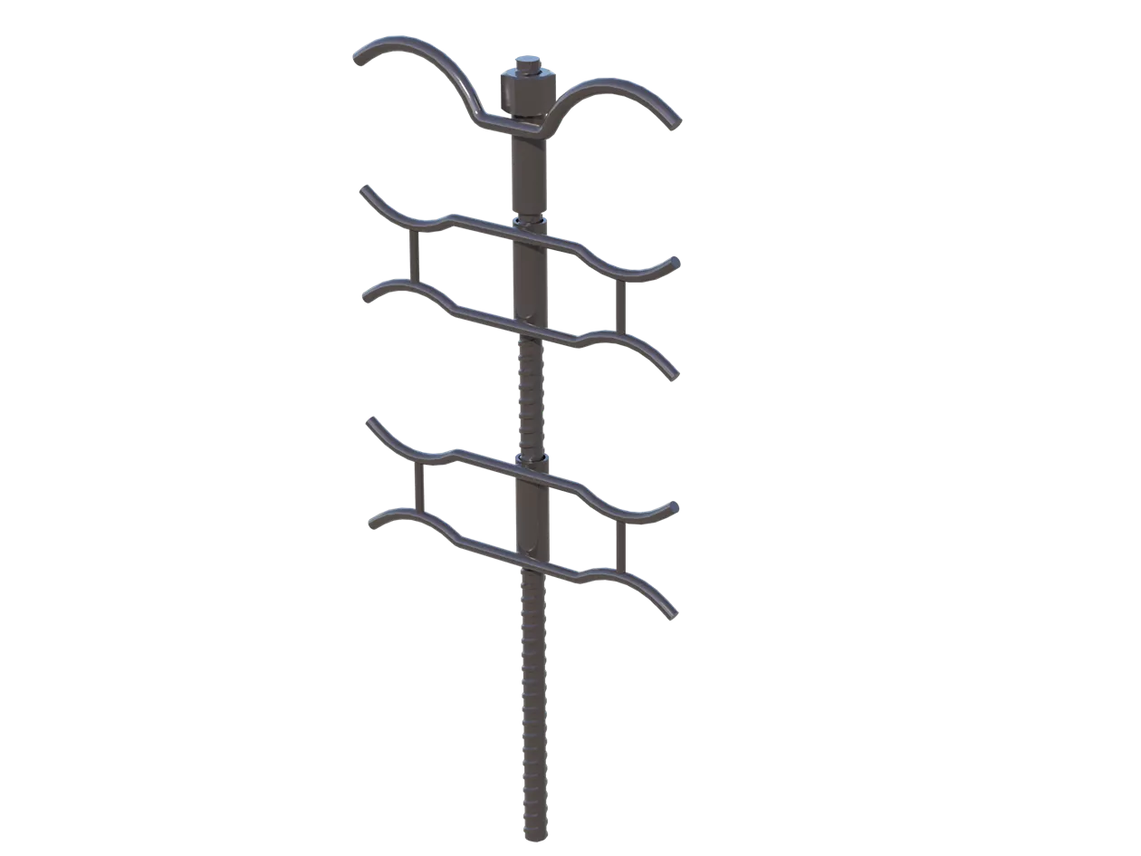 Je nach Anordnung der Rohre besteht die individuell angefertigte Rohhalterung XT aus einem oder mehreren Ankerstäben, auf welche die Positionshalter rationell aufgesteckt und die Rohre aufgelegt und eingeklemmt werden.