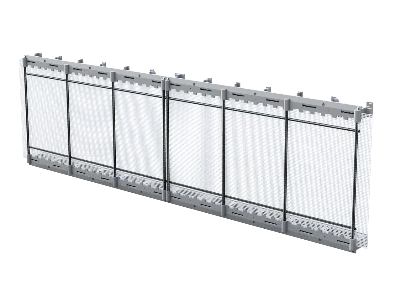 Das Abschalelement Net-Form 30 x 100 cm ist die rationelle Lösung um Arbeitsfugen bei Betonieretappen mit Eisendurchdringung zeitsparend und statisch perfekt abzuschalen.