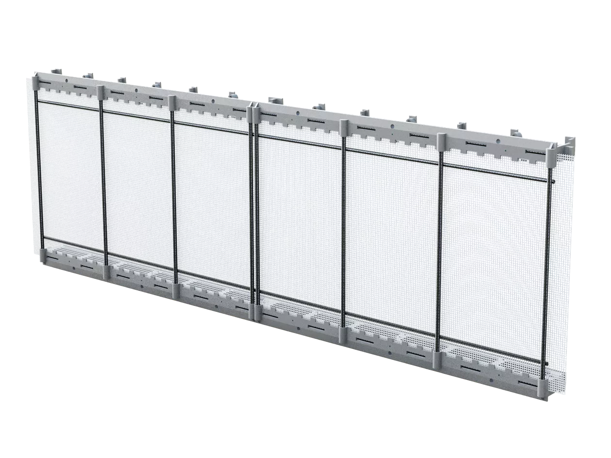 Das Abschalelement Net-Form 34 x 100 cm ist die rationelle Lösung um Arbeitsfugen bei Betonieretappen mit Eisendurchdringung zeitsparend und statisch perfekt abzuschalen.