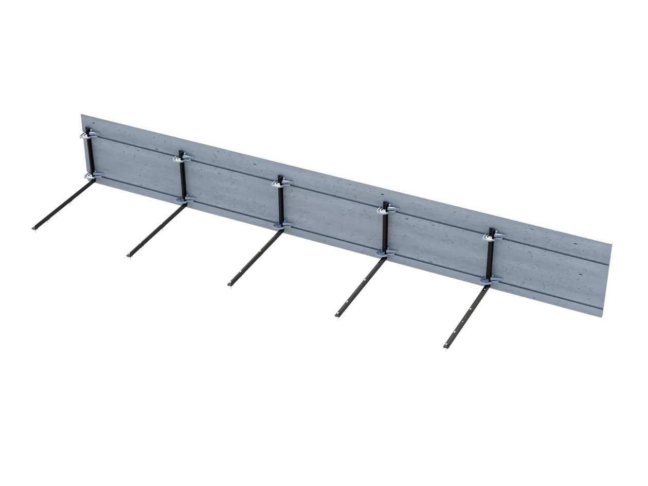 Bordfix avec équerres de dalle est composé d’une plaque de coffrage Bordfix et de plusieurs équerres de dalle avec les coulisses et les clous en aluminium correspondants.