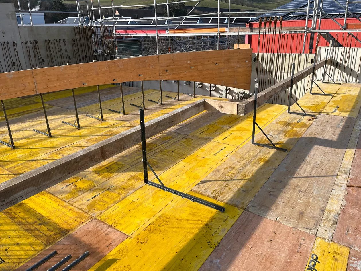 Le système Randfix réduit au minimum les dépenses de coffrage des rives de dalle dans les constructions de murs en briques. La planche de coffrage peut être fixée à la hauteur souhaitée à l'aide de papillons.