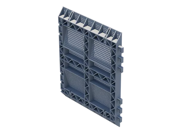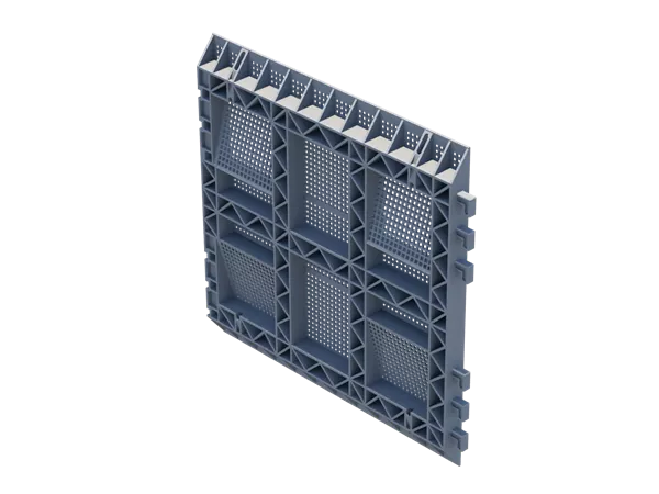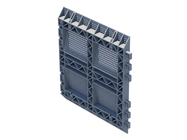 Après avoir retiré le couvercle et fait passer les installations de construction, la Steck-Box peut être fermée de manière optimale avec du mortier de scellement ou un système de cloisonnement. Grâce à la structure gaufrée des parois sur toute la surface, la Steck-Box génère une surface rugueuse permettant une liaison optimale avec le béton.